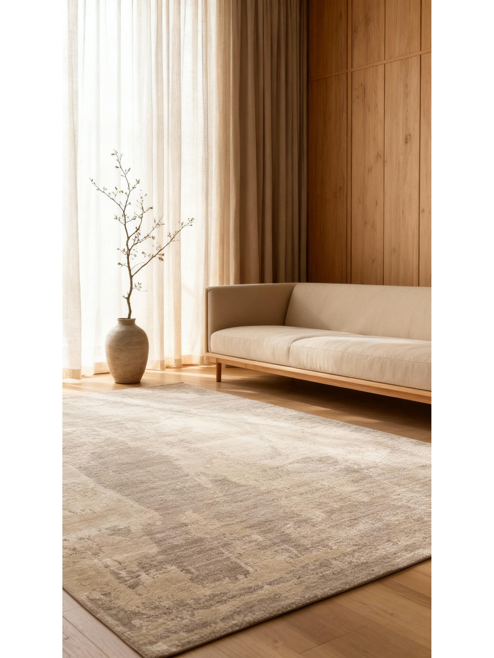 سجادة هلسنكي اليدوية من الصوف الطبيعي 100% والفيسكوز، تصميم حديث إسكندنافي لغرفة الجلوس، لون بيج