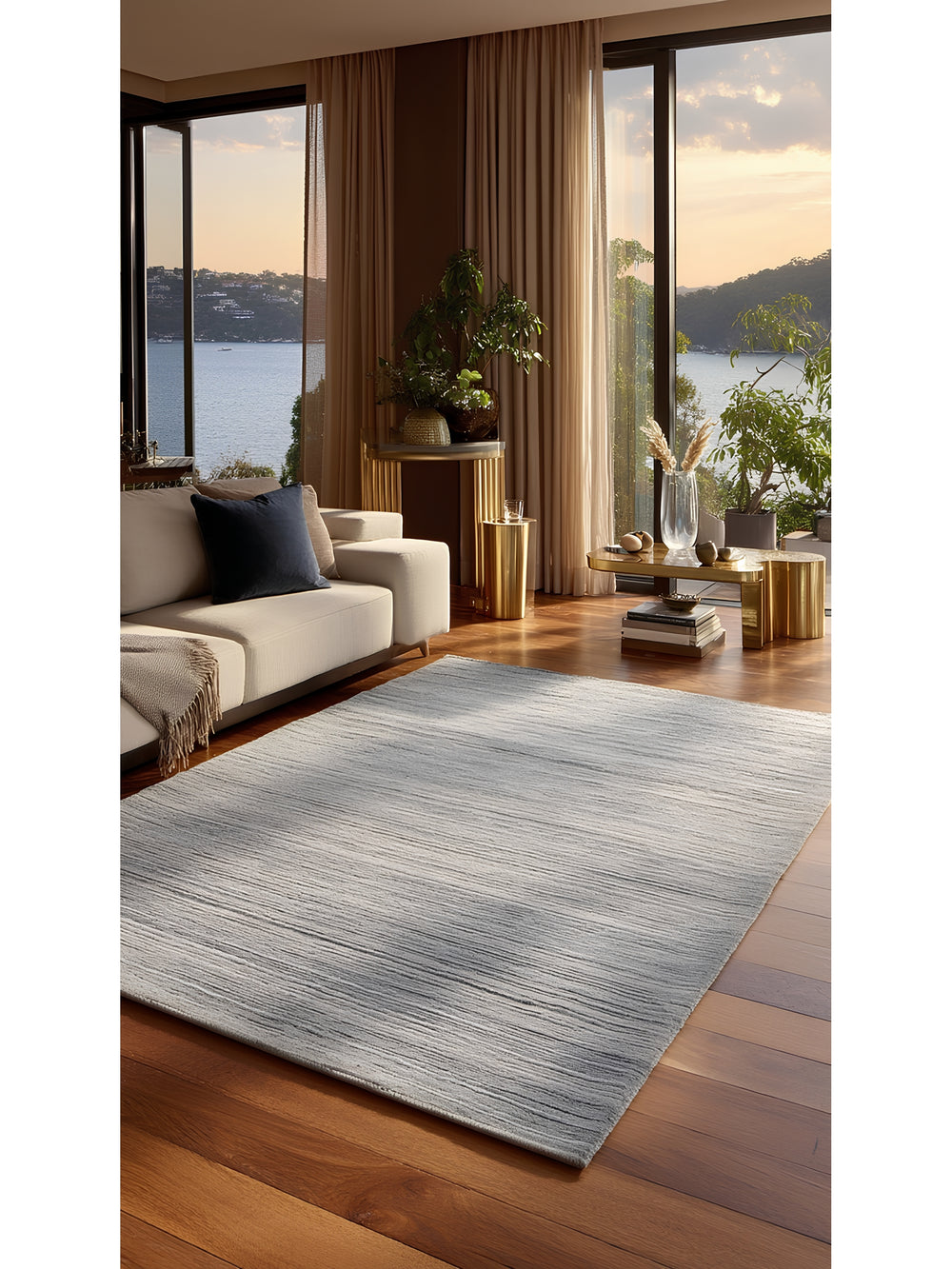 Amore Serie 100 % natürliche Bananenseide Viskose und Wollmischung Wohnzimmer Handgewebter Teppich GRAU