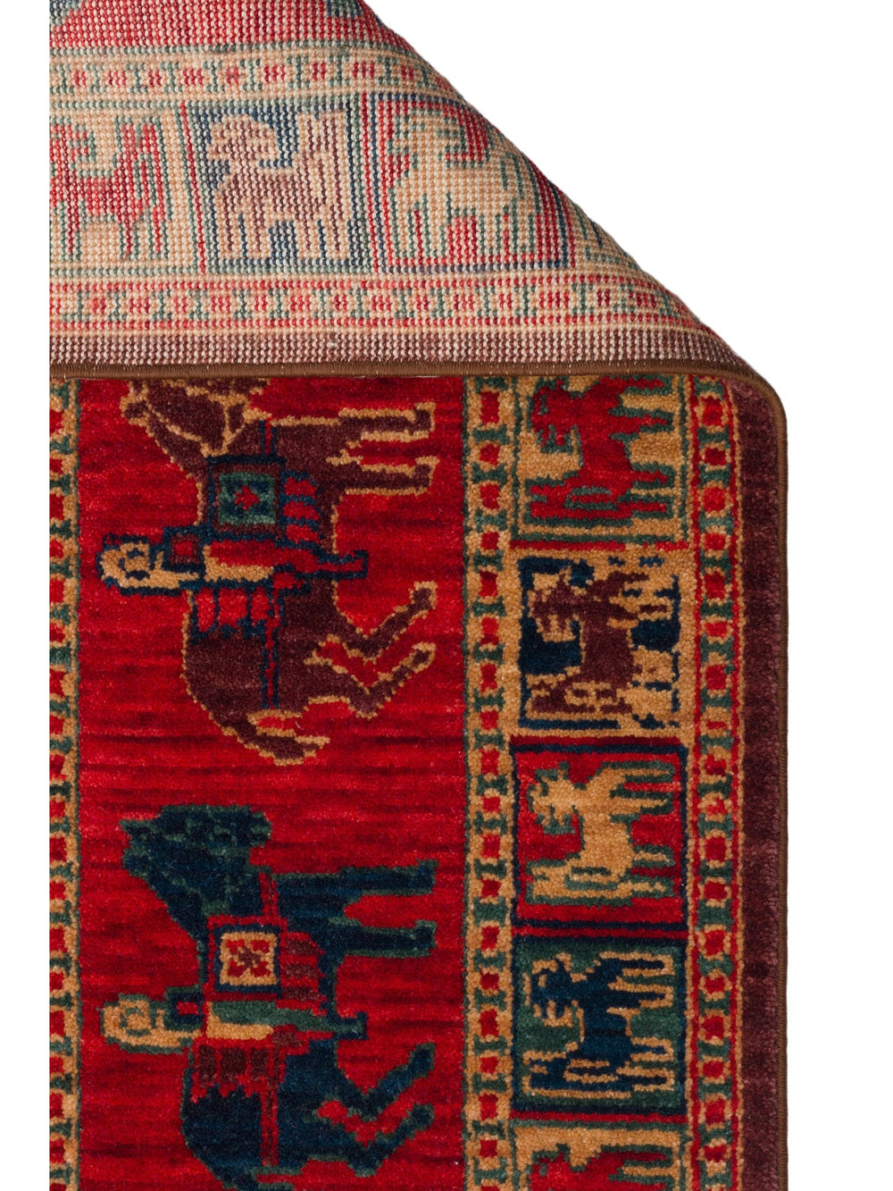 Tapis artisanal à métier noir fabriqué avec 100 % laine de Nouvelle-Zélande, série Göbeklitepe, orné de motifs anatoliens 04RED